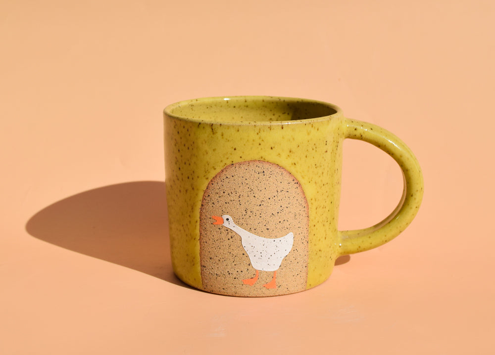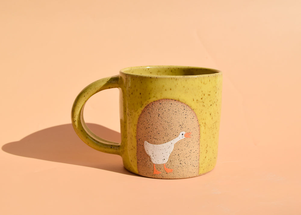 Add some whimsy to your morning routine with our Goose Mug! This wheel thrown mug features a playful goose design that is sure to make you smile. Start your day with a touch of joy and functionality.
